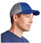 - Heathered fabric peak and front panel with nylon mesh side and back panels