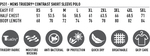 160gsm at 60% cotton, 40% Cooldry Polyester. Durable polymesh knit TrueDry.