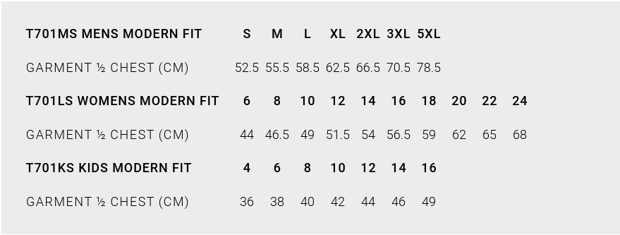 | Half Chest | 59 | 61 | 63 | 65 | 67 | 69 |
