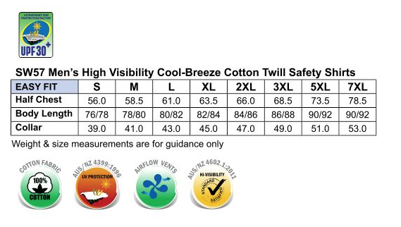 Short Sleeves, Under arm and yoke cotton mesh ventilation. Two flap pockets. Conforms to AS/NZS 4602, 1:2011 Class D, day use safety wear with UPF rating 30+