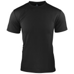 moisture removal microknit, snag resistant easy care fabric. Self fabric binding finishes neck and armholes, contrast side panels with back neck reflective tab for ear phones.